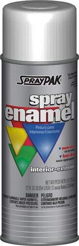 SprayPAK® Basic Enamel Paint is a basic enamel for the value-conscious consumer. For interior and exterior use. Dries quickly. Retards rust.