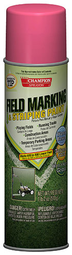 Champion Sprayon® Field Marking Paint is designed for use on grass, dirt and other unpaved surfaces. The discharge valve sprays only in a downward position. The universal tip fits all machines. Use it with a Champion Sprayon Paint Striper. Stripes 600-800 linear feet. Now toluene free; won't harm grass.