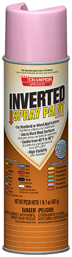 Champion Sprayon® Inverted Paint can be used for handheld applications (accurate marking 5” to 12” above the ground), or with a Champion Sprayon Long or Short Wand. Spray on asphalt, concrete or other paved surfaces, or on dirt, grass or gravel. Lasts 4-6 months, depending upon traffic and exposure.