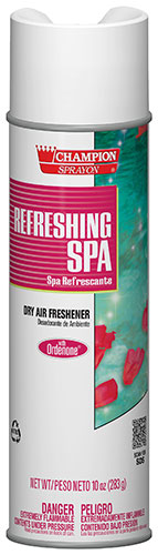 Champion Sprayon® dry air fresheners contain Ordenone™, an effective deodorizing ingredient that completely eliminates unpleasant odors. The long-lasting dry formula is effective against smoke and cooking odors, deodorizing without fallout.
