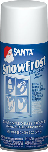 Santa® Snow Frost creates a powdered effect. Designed especially to decorate large windows, mirrors, and other glass surfaces. While more opaque than Ice Crystals, it allows light to filter through. Use with Santa® Christmas Stencils. Quick, easy cleanup with a damp paper towel.